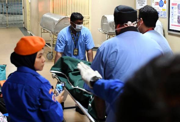 Mereka kemudian membawa turun sebuah keranda ke Jabatan Forensik sebelum membawa keluar semula keranda itu beberapa minit kemudian.