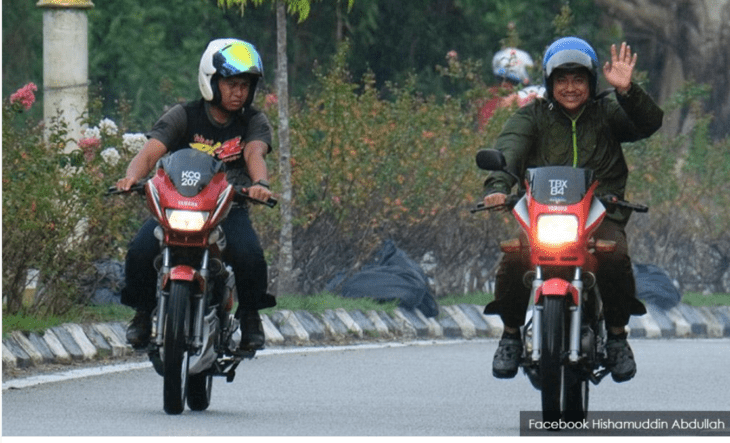 “Semangat RXZ membara di jiwa.. Menteri Besar Terengganu bermandi hujan untuk ke Perhimpunan RXZ members 3.0 di Gong Badak, Kuala Terengganu…Terbaik bosss,” tulis Hishamuddin di Facebooknya.